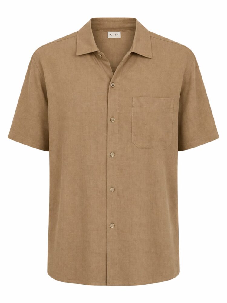 Camisa de manga curta em linho. Com bolso no peito, botões frontais e um corte descontraído, garante leveza, respirabilidade e elegância natural. Um essencial de verão, versátil e sofisticado para qualquer ocasião.