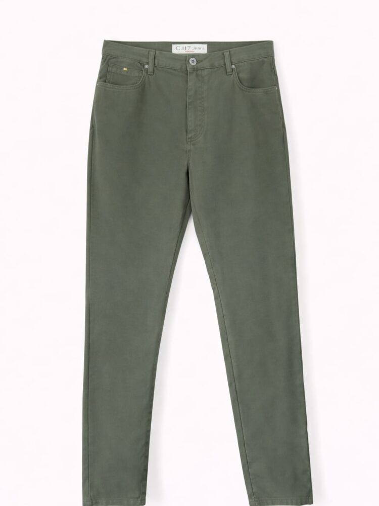 Calça de sarga, de 5 bolsos, com fecho frontal com botão e zíper. O tecido macio e confortável, garante estrutura e um caiemento elegante, tornando-a uma peça versátil para qualquer coordenado.