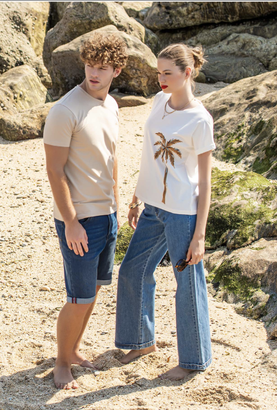 T-shirt com decote em bico, que acrescenta elegância e alonga a silhueta. O corte ajustado garante conforto, enquanto o tecido de toque suave proporciona uma sensação agradável ao longo do dia. Uma peça versátil, ideal para usar em looks cuidados e modernos.