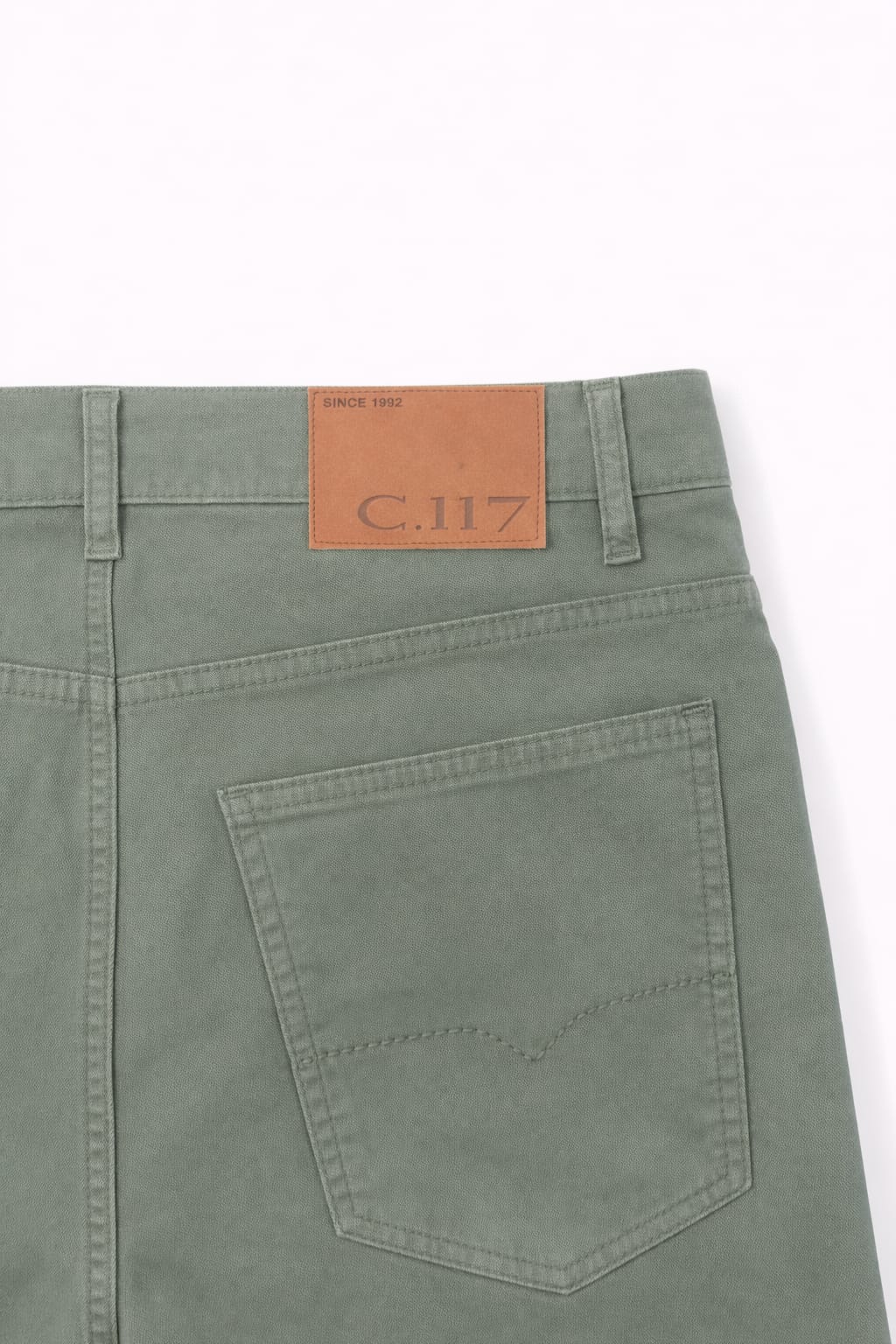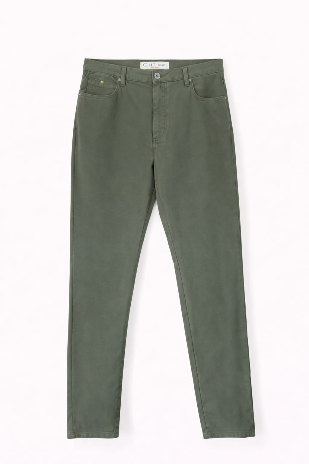 Calça de sarga, de 5 bolsos, com fecho frontal com botão e zíper. O tecido macio e confortável, garante estrutura e um caiemento elegante, tornando-a uma peça versátil para qualquer coordenado.