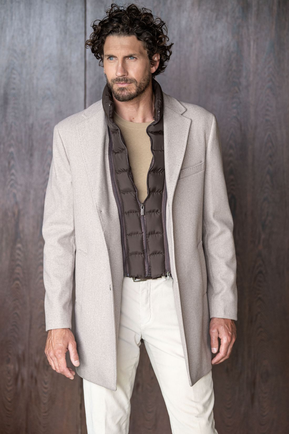 Sobretudo masculino de excelência, que combina conforto, elegância e durabilidade. O corte estruturado com lapela clássica e fecho de botões confere um visual sofisticado e intemporal. Possui bolsos laterais e um bolso no peito, garantindo funcionalidade sem perder a linha elegante.